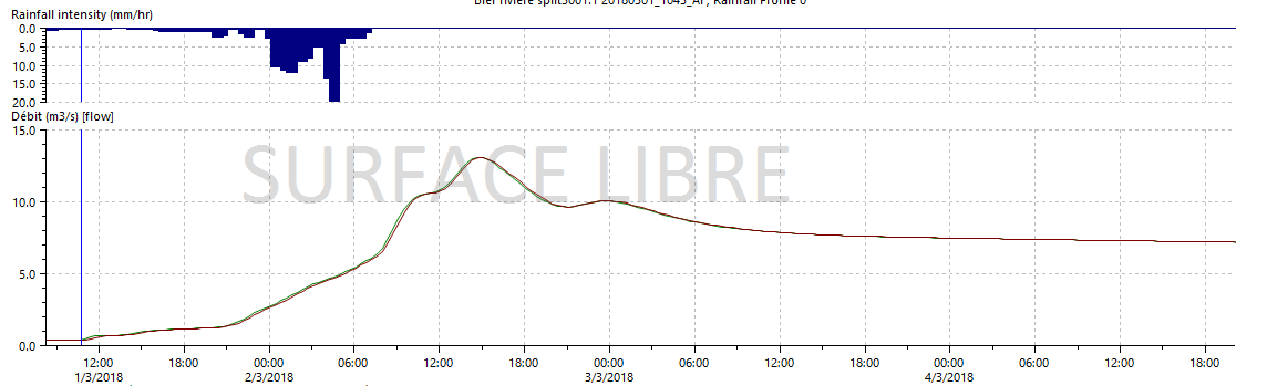 Possibilité de lancer des variantes d'un scénario initial pour tester des données d'entrée alternatives (prévisions météorologiques de sources différentes), d'évaluer les effets d'une ouverture de vanne ou d'une rupture d'ouvrage par exemple sur les zones inondées projetées par le modèle.