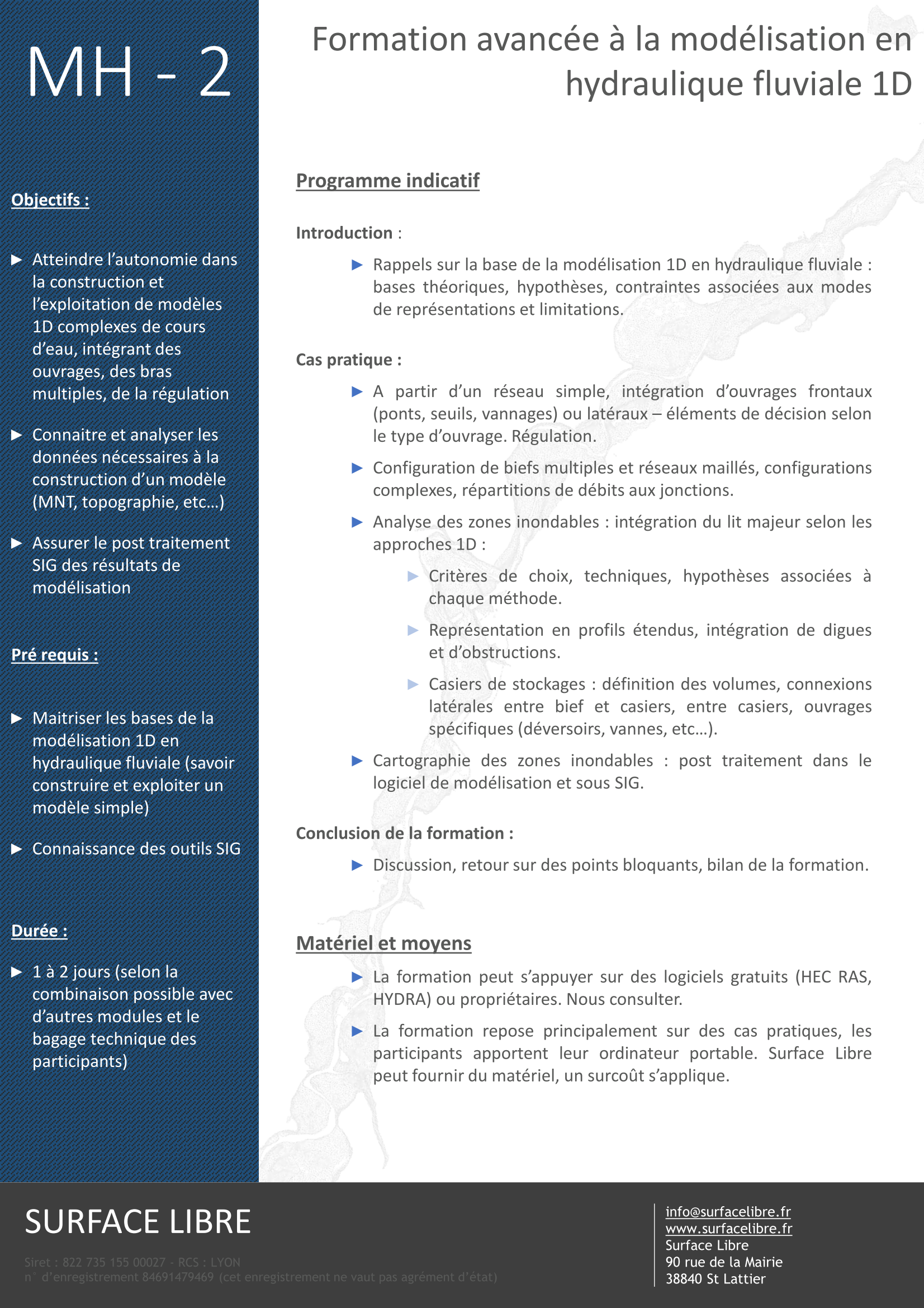 Nous proposons des prestations de formation1 intra-entreprise ou groupées, sur un ou plusieurs jours, sur site ou à distance, sur les thématiques liées aux études d'hydraulique fluviale et urbaine.